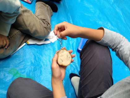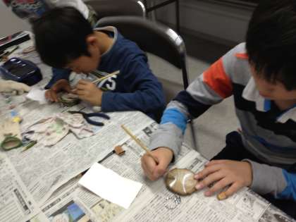 木工作は、キーホルダーの金具をつけて、アクリル絵の具で色づけに入りました。みんな真剣です。