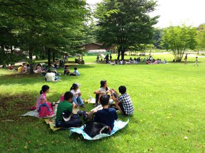 だいや川公園に着きました。少し早めのお昼ごはん。風が爽やかで気持ちがいいです。みんな元気です。
