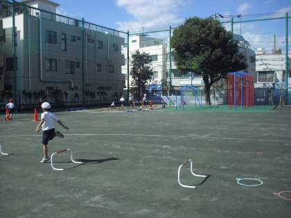 体育でミニハードル走をしました。一回目ということもあり踏み込む足や跳ぶ方の足を決めるのにくろうしていました。「次は足を決めて跳ぶぞ」と見通しをもって授業にのぞんでいました。