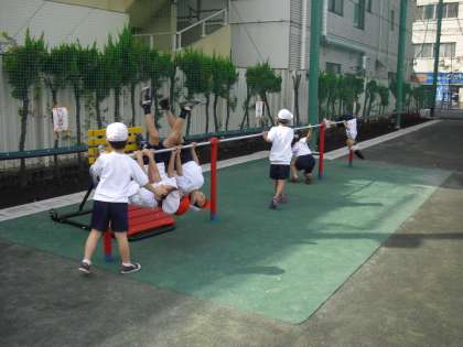 子どもたちは、新しいグラウンド・新しい遊具に大喜びです。