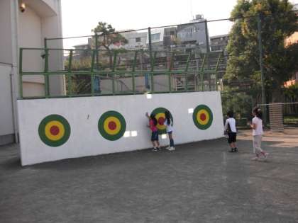 秋晴れの中、校庭で鏡を使って日光を反射させて遊びました。