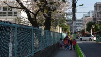 昨日7日の始業式、入学式から一夜明け、今日8日から本格的な教育活動がスタート。子供たちが元気に登校してきました。東門の桜もまだ残っています。15分の開扉の頃には、ほとんどの児童が登校していて、昇降口は大混雑です。
