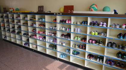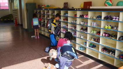 西校舎の2年生の昇降口のようすです。外靴のかかとがそろって整然と並んでいます。靴の乱れは心の乱れと言われますが、合格ですね。落ち着いたスタートをきることができているようです。