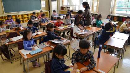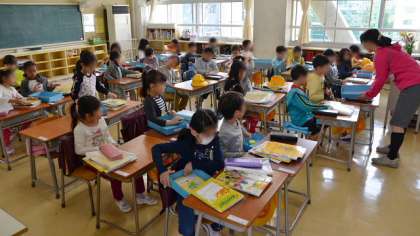 1年生各クラスとも、最初のうちは学校生活に慣れること、学校生活を知ること、生活のルールやマナーを学ぶことが中心となっています。授業時間も少しずつ延ばしてなれるようにていねいに指導しています。