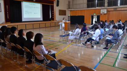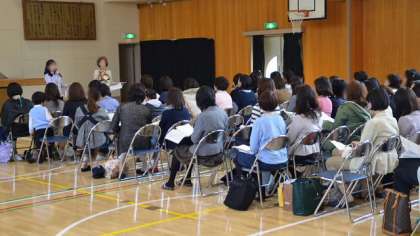 10日午後、56年生の保護者会を開催しました。たくさんの保護者の方々が参加して、体育館で最初に5・6年全体会を行い、担任、担当教員の紹介、学校長からの学校経営方針の説明、主幹から今年度の重点について話をしました。その後それぞれの学年の全体会、さらに各クラスで担任からの話などをしました。お忙しいところお集まりいただきありがとうございました。