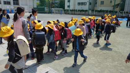 14日で、1年生の方面別の集団下校は終了です。3校時まで授業をした後。校庭に集まって方面別に分かれ、教員、学校主事に引率されて下校しました。明日から1年生は給食を食べてから、それぞれの下校になります。近くに住んでいる友達と一緒に、事故に遭わないように気をつけて帰るようにしましょう。