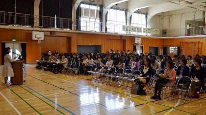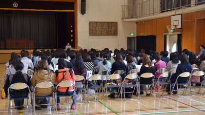 14日(月)、13時45分から1・2年生の保護者会が行われました。体育館で1・2年合同の会をした後、1年は体育館で、2年生はランチルームで学年全体会をしました。どちらの学年も、出席率が非常に高かったのに感心しました。お忙しいところご出席いただいたこと、感謝いたします。
