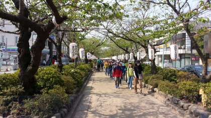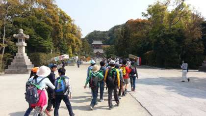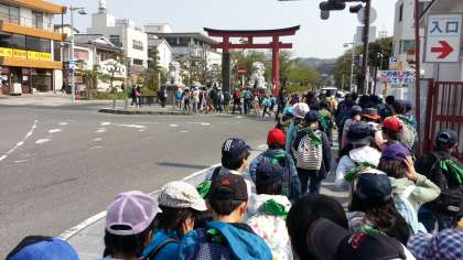 鎌倉到着。鶴岡八幡宮前でクラス写真を撮って、出発。源氏山公園に向かいます。