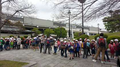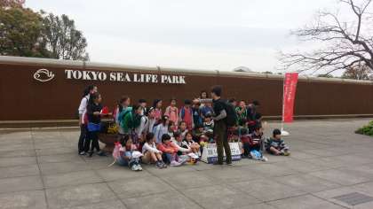 科学博物館をたっぷり見学して、予定より少し遅れて出発。ところが道路がすいていたので、11時40分、葛西臨海水族園に予定通り到着。水族園前で記念写真を撮りました。