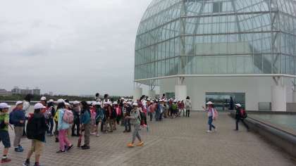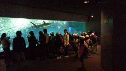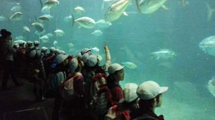いよいよ水族園の見学です。たくさんの魚に子供たちは大喜び。大きなマグロの大回遊水槽の前では歓声があがりました。