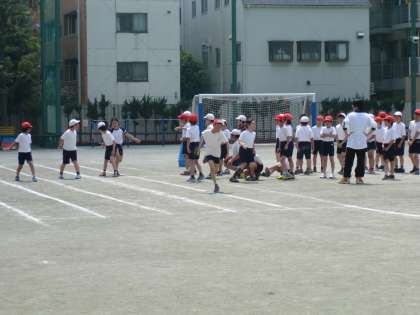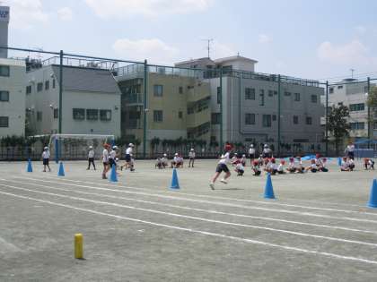 最後に校庭半周のリレーをしました。力強い走りが印象的です。