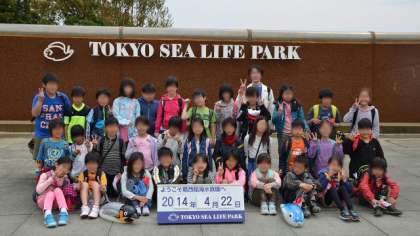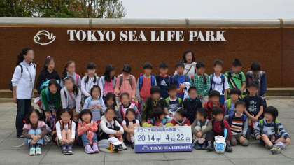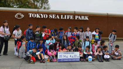 国立科学博物館からバスで葛西臨海水族園に移動。クラスごとに記念撮影を撮り、その後尾昼食を食べました。