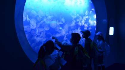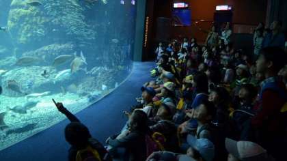 好奇心旺盛な子どもたち、目の前を泳ぐ魚の名前にも関心をもって、よく覚えていました。