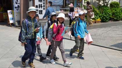午後は江ノ島大橋をみんなで渡り、入り口からはグループで行動です。地図を片手に、どきどきしながらポイントを回りました。