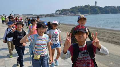 グループで回った江ノ島。全員無事に定刻まで戻ってきました。初夏を思わせる天気で視界もよく、海辺ですごす遠足にぴったりの1日になりました。