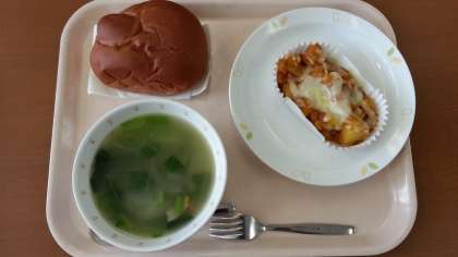 ココアパン 牛乳 ポテトグラタン コンソメスープ