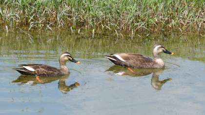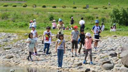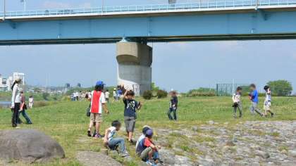 兵庫島の木々には野山の鳥が、多摩川には水辺の鳥がいます。家から持参した双眼鏡をもって観察している子もいます。