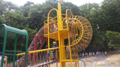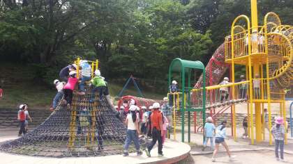 お昼ご飯とおやつタイムが終了。1時半まで遊具で思う存分遊びます。
