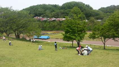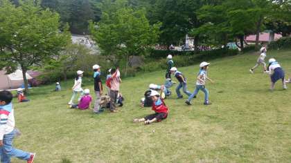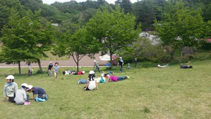 遊具で遊んだ後は、芝生でゴロゴロ!