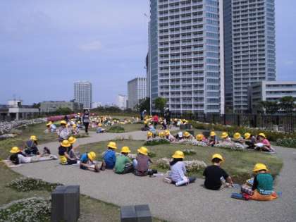 広場では、友達とおいかけっこしたりおしゃべりしたりして、仲良く過ごしました。