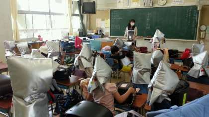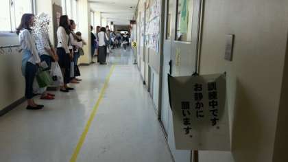 10日(土)、今日は土曜授業日で、4校時に緊急時に備えた引き取り訓練を行いました。11時10分、放送で「大地震に備える警戒宣言」が発令されたという想定で、訓練の開始が告げられました。各学級は、その放送を聞いて下校の準備に入りました。