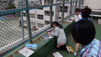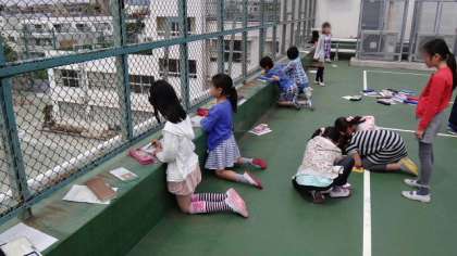 12日、3年2組の社会のようすです。3年生の授業は地域学習。今日は屋上から周辺地域の様子を観察し、スケッチとコメントでまとめていました。よく頑張っています。