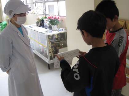 「今日のこんだて」紹介を毎日,給食委員会が行っています。