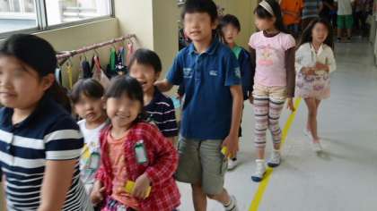 なかよしタイム終了後、今度は5年生が1年生を教室につれてもどりました。なんとなくほほえましい姿ですね。6年生は終了後、担当の教員と今回の反省と次回の確認をしました。次回も楽しみですね。