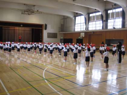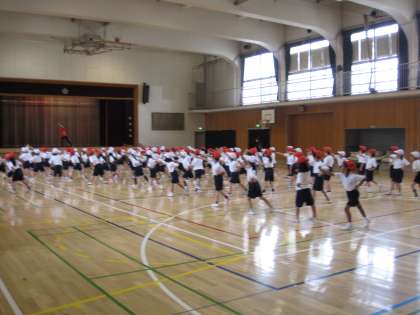 少しずつ動きを確認しながら覚えていきます。できたところまで音楽のリズムに合わせて表現します。一歩一歩向上して,本番には最高の演技が見せられそうです。