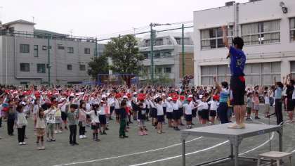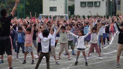 15日、今朝は体育朝会を行いました。早朝の雨も上がり、校庭にあまり影響なく予定通り実施できました。今朝は運動会で行うラジオ体操の練習をしました。子供たちが真剣に体操をしていたのが印象に残りました。真面目で一生懸命の二子の子です。