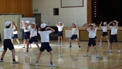 昨日から始まった応援団の朝練習。16日の朝もがんばっていました。元気な応援団の子どもたちの声が体育館から校庭にまで響いていました。団長さんも決まって、みんな協力して練習をして、だいぶ形ができあがってきています。