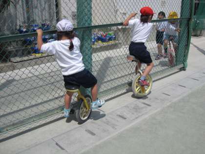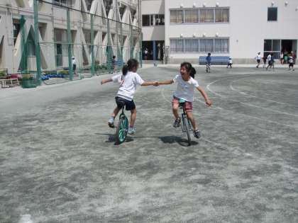 一輪車は低学年の女子の子どもたちに大人気です。