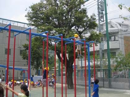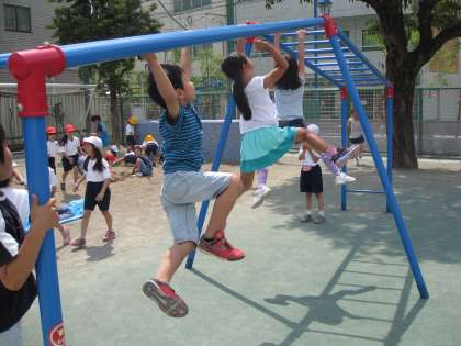 雲梯(うんてい),上り棒に取り組んでいると,バランス感覚や腕支持感覚を身に付けることができます。握力や腕の筋力も向上していきます。そして何よりも,楽しんでいる様子がすてきです。