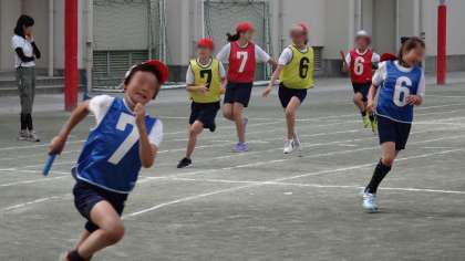20日朝のリレー練習の様子です。今日は3・4・5・6年生が、朝早く登校してきて体育着に着替え練習にがんばっていました。だいぶバトンのリレーが上手になってきました。