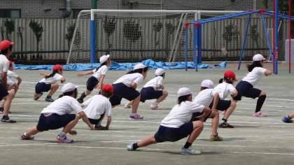 20日、4年生の運動会表現種目の練習の様子です。各学年練習に熱が入ってきました。4年生は力強い動き、切れのよい動きに挑戦しています。