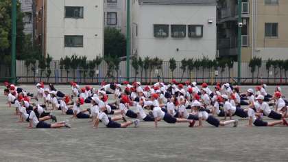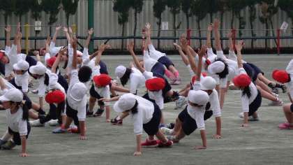 20日、3年生の運動会練習の様子です。あれっ!組体操?・・・音楽に合わせて様々な動きを組み合わせています。お楽しみに。子供たちがとっても楽しそうにニコニコしながら取り組んでいます。