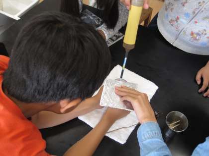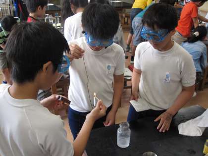 今日の実験は,「ろうそくが燃える前と後の空気中の酸素と二酸化炭素の割合を調べる」です。気体検知管を使用した,実験です。マッチの擦り方は慣れていないようでしたが,グループの友達と協力して実験を進めることができました。