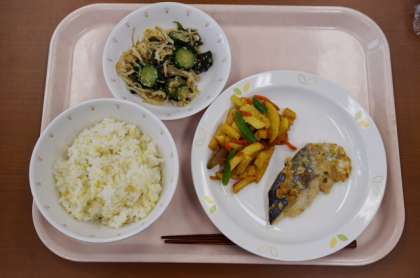 雑穀ごはん 牛乳 魚のねぎみそ焼き じゃがいものきんぴら ごま酢かけ