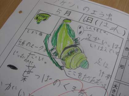 授業のはじめに,「アゲハの幼虫」観察カードの紹介がありました。