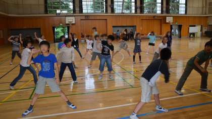 22日(木)6校時は、5・6年の運動会係活動を行いました。放送、救護、応援、準備、審判、採点、開閉開式、装飾、音楽、児童管理、大玉送りという11の係があります。写真は応援係のようすです。毎朝練習を積んでいるだけあって、ずいぶん上手に迫力ある応援ができるようになってきました。裏方役を務める他の係も、しっかり準備をして本番に備えています。