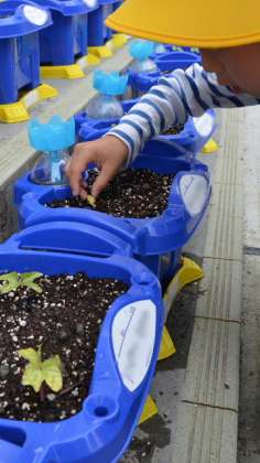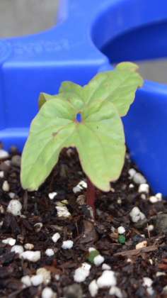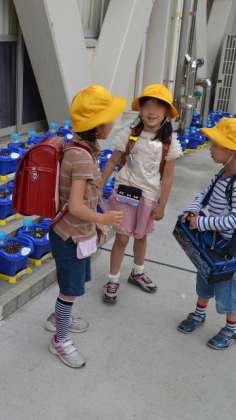 23日朝、登校してきた1年生が花壇のところにおいてある鉢を見てうれしそうにしています。先日、一人一鉢生活科で育てることにして種をまいたアサガオが発芽していました。自分の鉢を見て、とてもいとおしそうにしている姿がすてきでした。