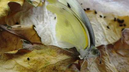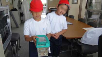 同じく中休み、今度は3年生の子が飼育ケースを抱えてきて見せてくれたのは、羽化したばかりのモンシロチョウです。とってもうれしそうでした。アオムシから大事にキャベツの葉を毎日取り替えて育て、サナギになり、今日それが蝶になったのです。この感動を大事にしてほしいですね。