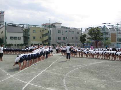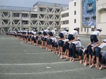 低い姿勢から,一瞬で大きなピラミッドができるように練習しています。