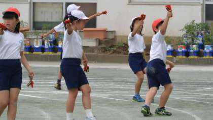 4年生の運動会表現種目の練習の様子です。今日から小道具の「鳴る子」を使い始めました。鳴る子の音をみんなで合わせるように踊って、メリハリのある演技ができそうですね。