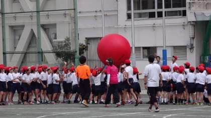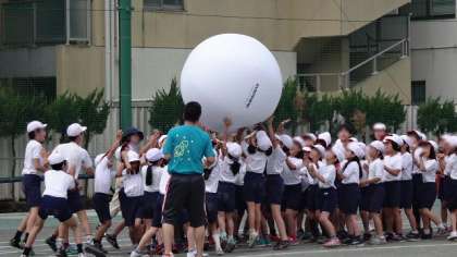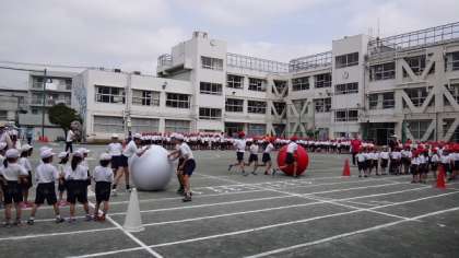 1・2年生は地上を転がし、3年生以上は頭上を運びます。