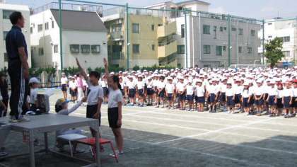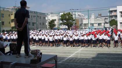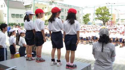 朝から強い日差しが照りつける校庭でしたが、整然と並んだ子どもたちは姿勢をくずさずがんばりました。