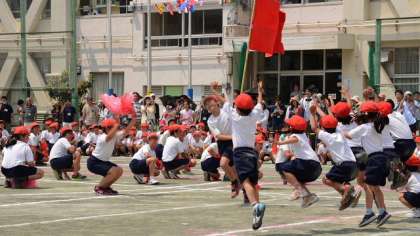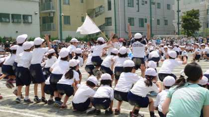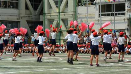 応援の最後はウェーブです。赤白それぞれの旗にあわせて「ウォー」という大きな声と共にみんなが立ち上がって大盛り上がりでした。