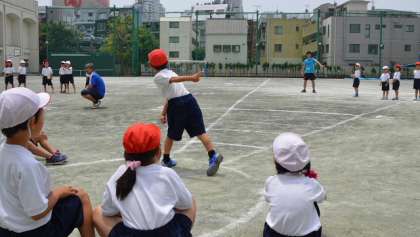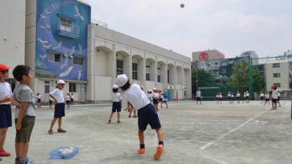 今日4日(水)と明日5日(水)は、新体力テストの実施日となっています。昨日は校庭にソフトボール投げにそなえて測定用のラインをひきました。ところが、明日の天気が雨という予報になっているので、ソフトボール投げは今日中にやってしまおうということで、各学年が予定を変更して行いました。写真は1・2・3年生のようすです。ボール投げになれていない子もいて、体育でもっと経験させる必要がありそうです。
