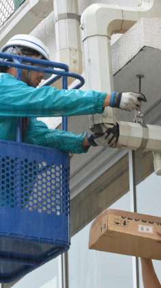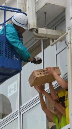 このままでは4年2組の学校生活に影響が出るということで、世田谷区の教育委員会に対策を要望したところ、6日午後、雨の中にもかかわらず、高所作業車で巣の撤去作業をしてくれました。