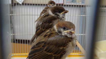 子どもたちに大人気の子スズメたち。人になれて手にのるようになっていますが・・・自然に帰すには、そろそろ飛行訓練とか、エサの取り方も教えなければと思っています。子どもたちとのふれあいも、残念ですがそろそろ制限する時期かなと思っています。